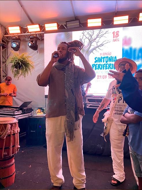 O espetáculo abriu a edição comemorativa de 18 anos do Sintonia Periférica, realizado no Centro Cultural Erukerê, um espaço que pulsa memória, tradição e coletividade. O evento reuniu diferentes linguagens — teatro, música, dança, capoeira, feirinha cultural — reafirmando a potência da cultura periférica como lugar de resistência e encontro.